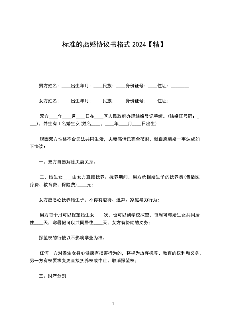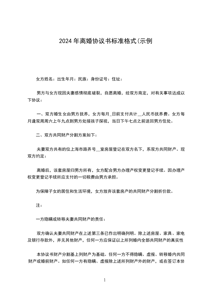 女方姓名:出生年月:民族:身份证号:住址: