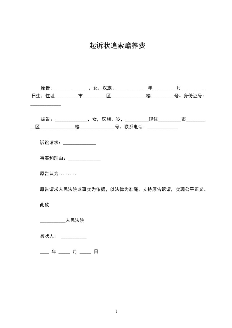 原告:______________,女,汉族,_____________年__________月__________日生,住址__________市__________区_______________楼__________号。身份证号:_____________