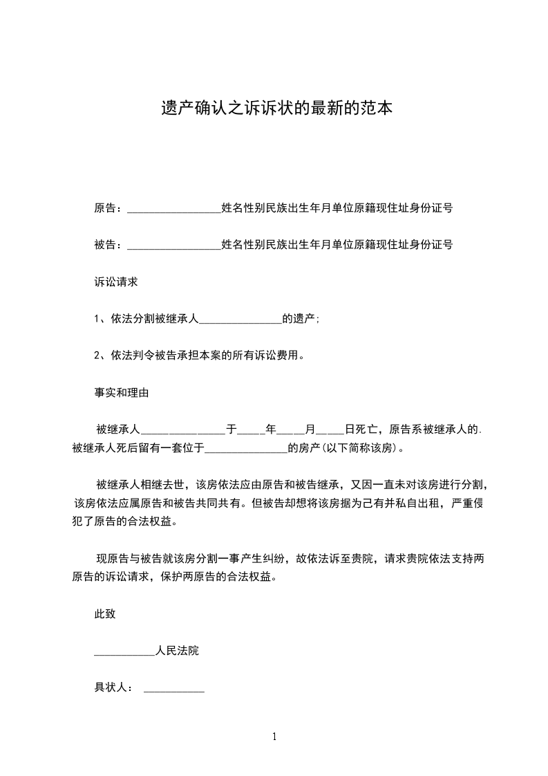 被继承人_______________于_____年_____月_____日死亡,原告系被继承人的.被继承人死后留有一套位于_______________的房产(以下简称该房)。