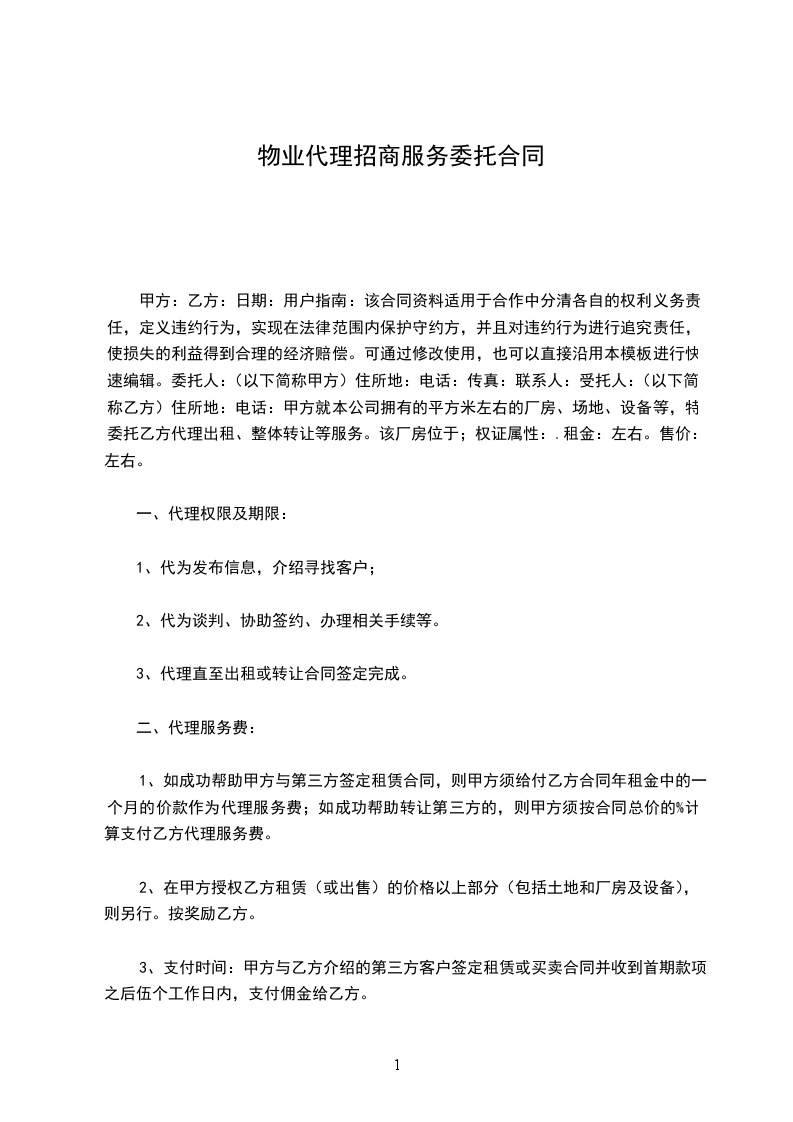 1、如成功帮助甲方与第三方签定租赁合同,则甲方须给付乙方合同年租金中的一个月的价款作为代理服务费;如成功帮助转让第三方的,则甲方须按合同总价的_____%计算支付乙方代理服务费。