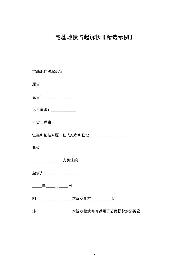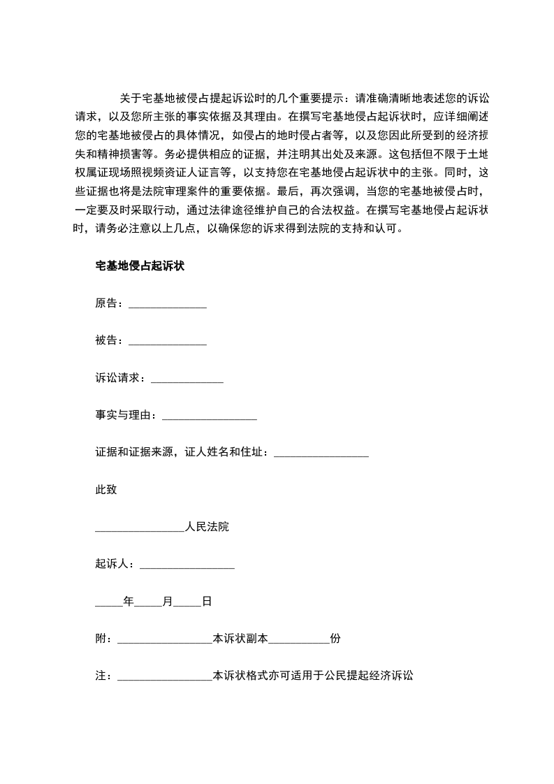 注:_________________本诉状格式亦可适用于公民提起经济诉讼