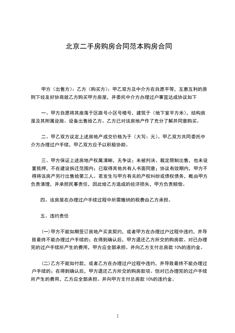 1、乙方应在签订《北京市房屋买卖合同》时,支付相当于总房款的10%的定金。