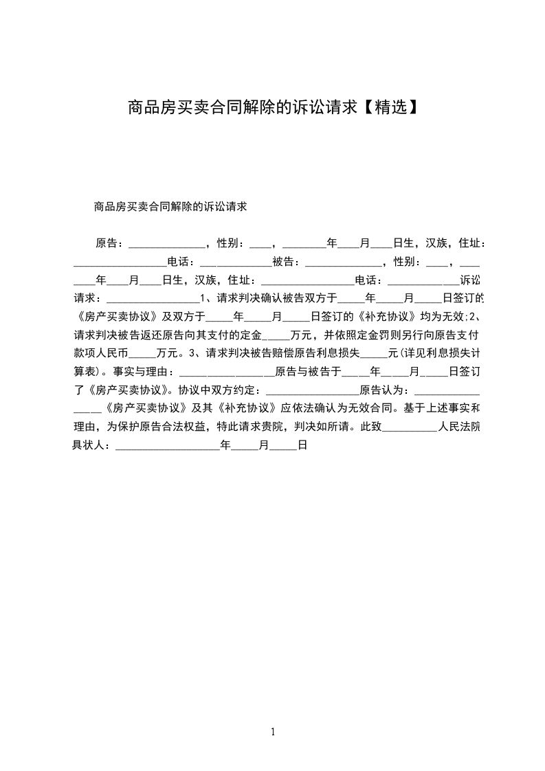原告:______________,性别:____,________年____月____日生,汉族,住址:_________________电话:_____________ 被告:______________,性别:____,________年____月____日生,汉族,住址:_________________电话:_____________ 诉讼请求:_________________ 1、请求判决确认被告双方于_____年_____月_____日签订的《房产买卖协议》及双方于_____年_____月_____日签订的《补充协议》均为无效; 2、请求判决被告返还原告向其支付的定金_____万元,并依照定金罚则另行向原告支付款项人民币_____万元。 3、请求判决被告赔偿原告利息损失_____元(详见利息损失计算表)。 事实与理由:_________________ 原告与被告于_____年_____月_____日签订了《房产买卖协议》。协议中双方约定:_________________ 原告认为:_________________ 《房产买卖协议》及其《补充协议》应依法确认为无效合同。 基于上述事实和理由,为保护原告合法权益,特此请求贵院,判决如所请。 此致 __________人民法院 具状人:______________ _____年_____月_____日