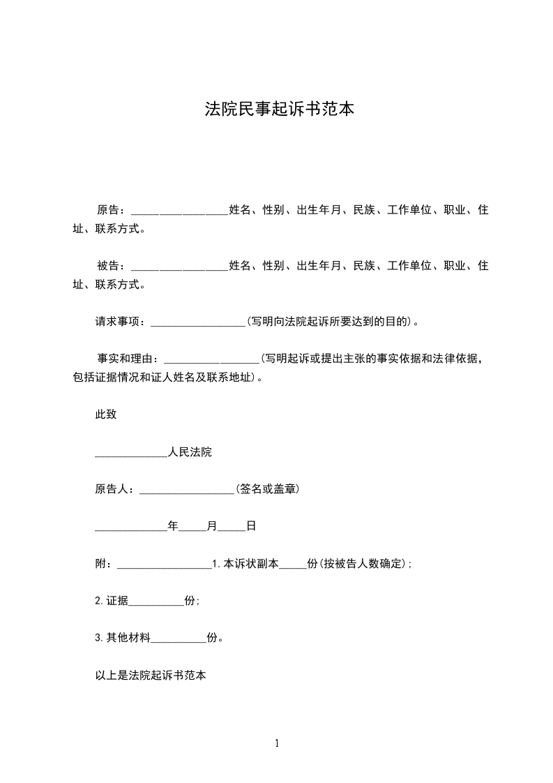 附:_________________1.本诉状副本_____份(按被告人数确定);