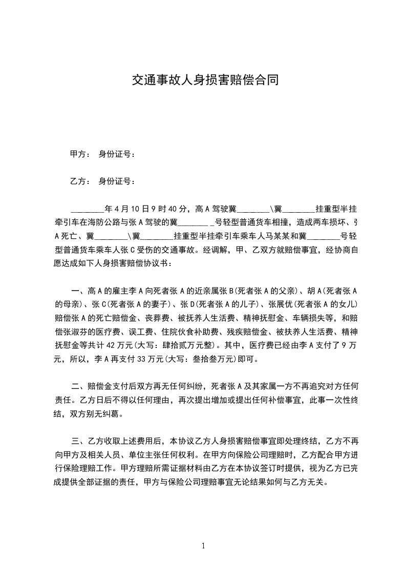 甲方:,性别,民族,_____年_____月_____日出生,职业,现住,身份证号码,联系电话:。