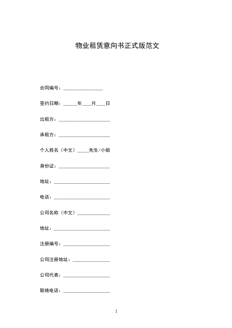 5.意向书于正式租赁合同签署后失效。