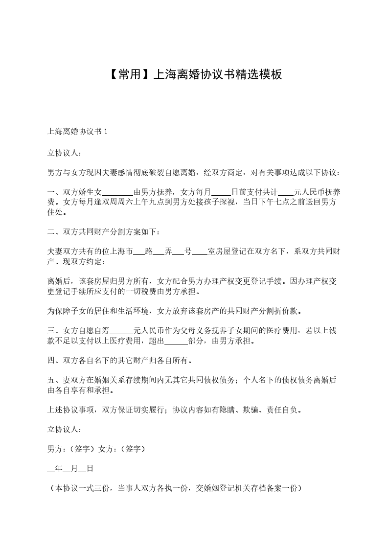 (本协议一式三份,当事人双方各执一份,交婚姻登记机关存档备案一份)
