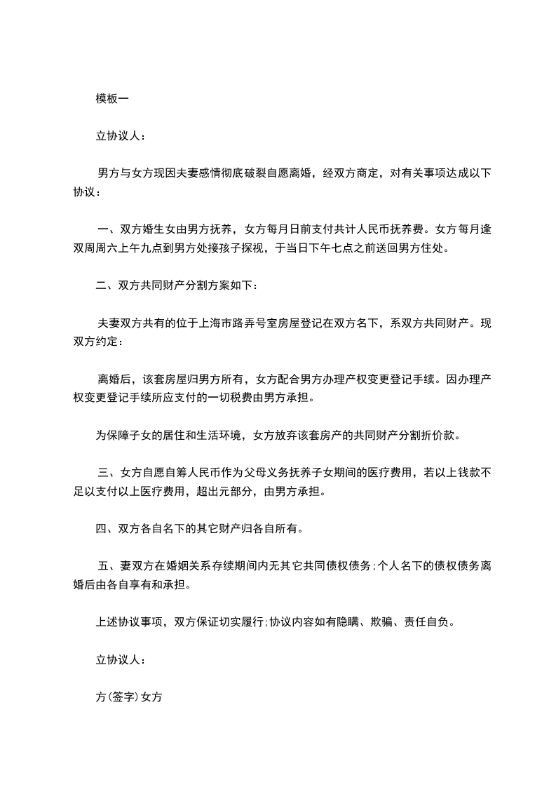 夫妻双方共有的位于上海市路弄号室房屋登记在双方名下,系双方共同财产。现双方约定: