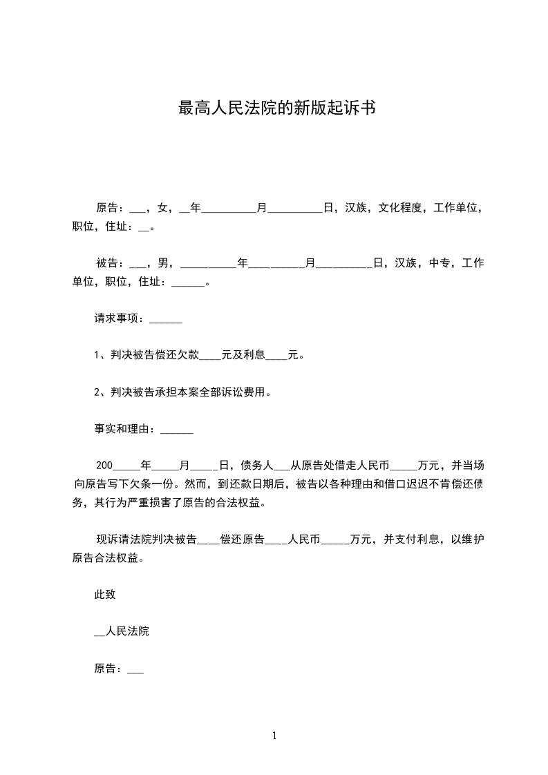 1、判决被告偿还欠款_______________元及利息_______________元。