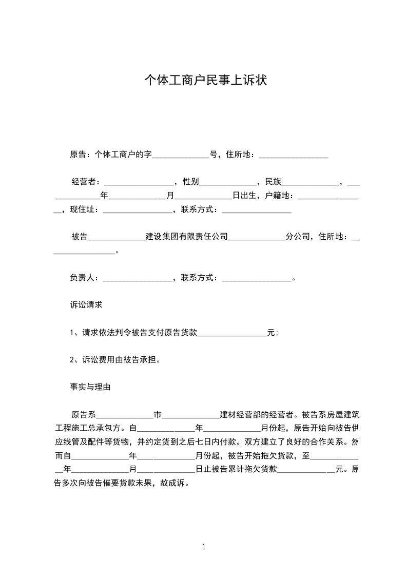 原告系______________市______________建材经营部的经营者。被告系房屋建筑工程施工总承包方。自______________年______________月份起,原告开始向被告供应线管及配件等货物,并约定货到之后七日内付款。双方建立了良好的合作关系。然而自______________年______________月份起,被告开始拖欠货款,至______________年______________月______________日止被告累计拖欠货款______________元。原告多次向被告催要货款未果,故成诉。