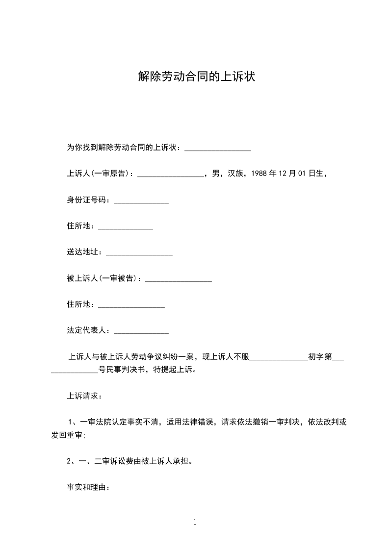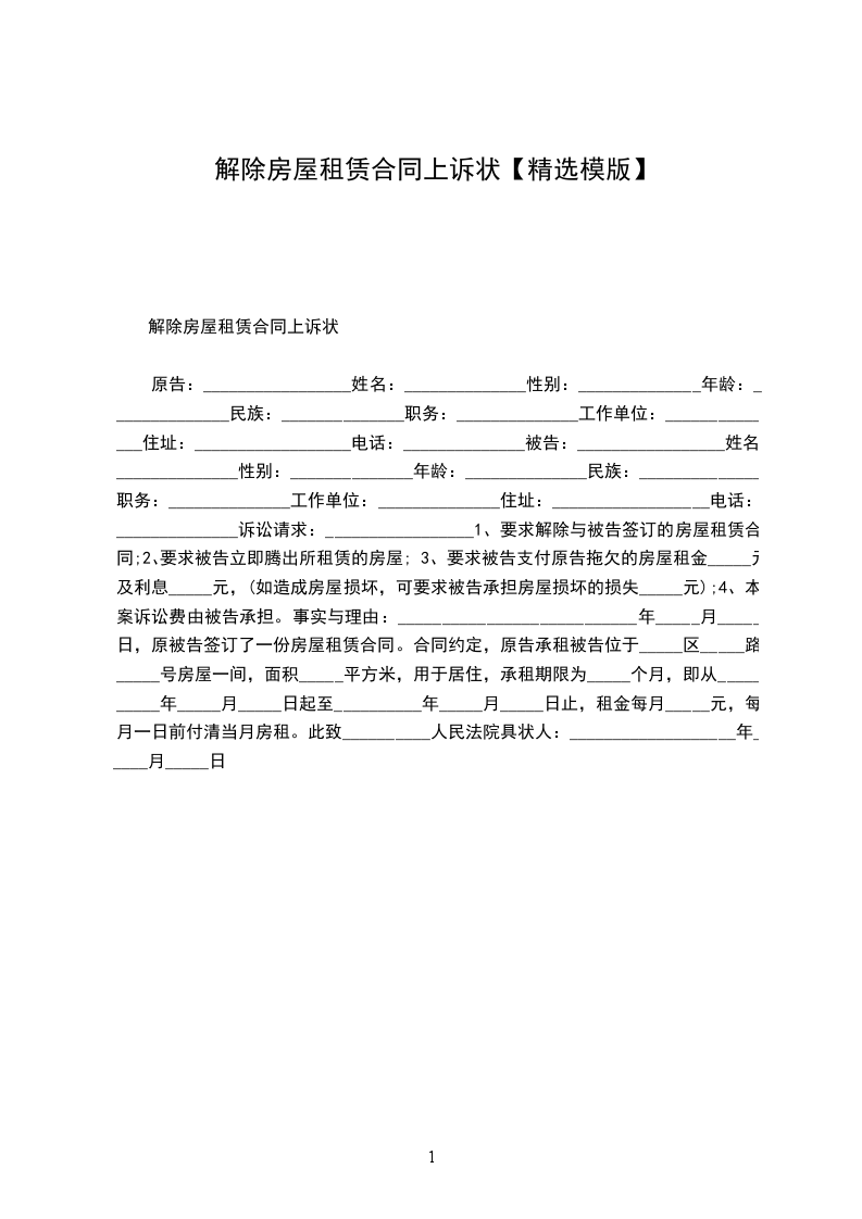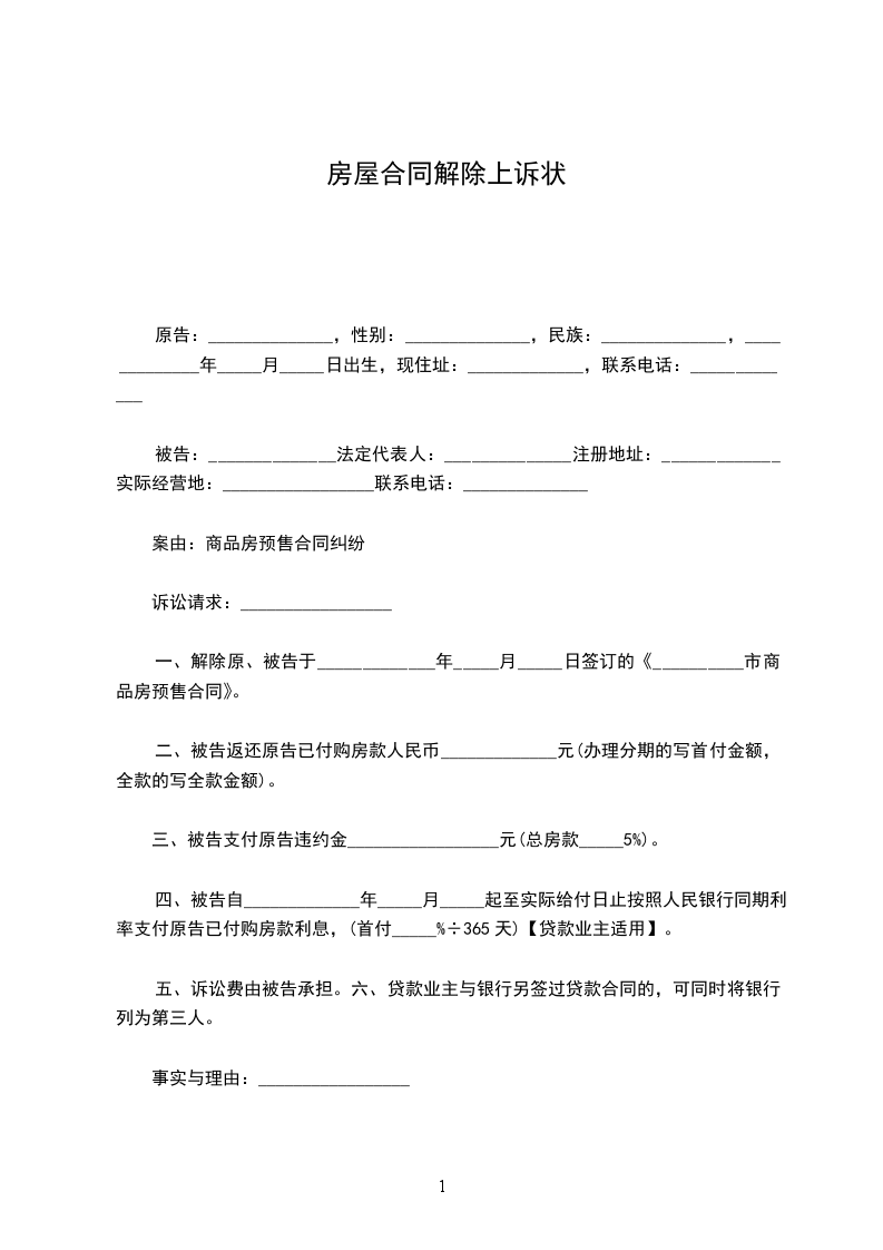 原告:_________________姓名:______________性别:______________年龄:______________民族:______________职务:______________工作单位:______________住址:__________________电话:______________