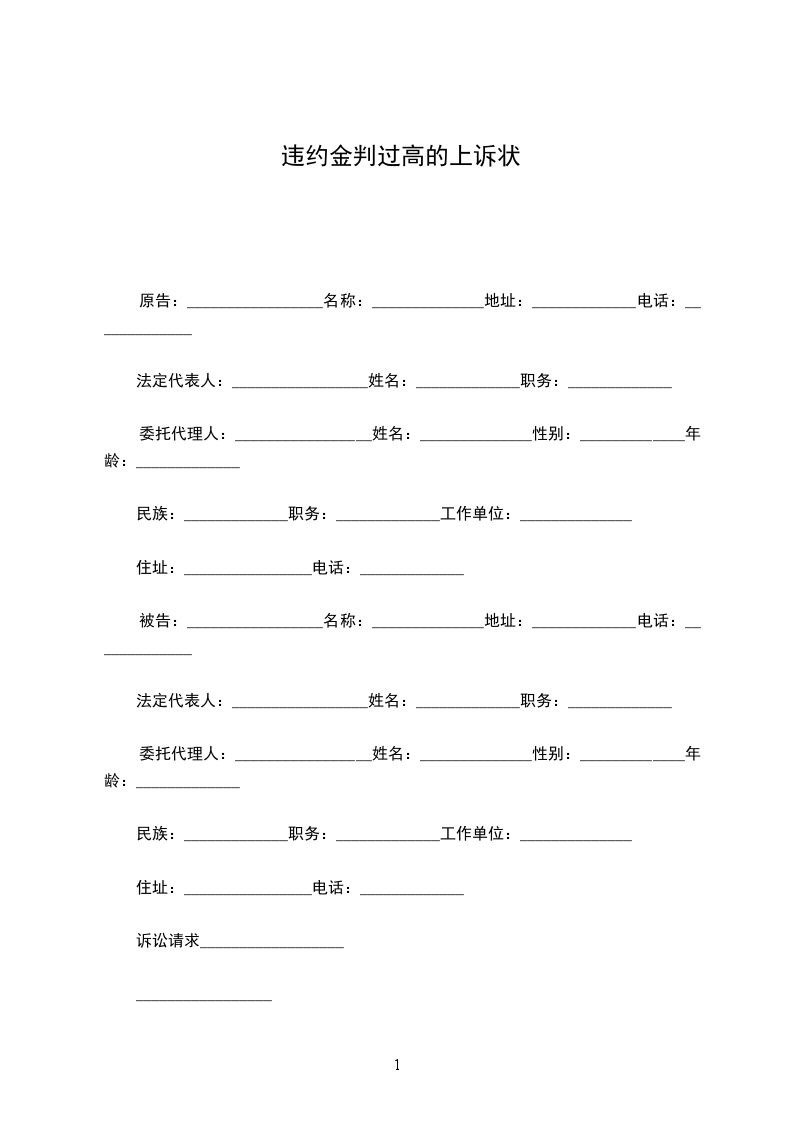 违约金判过高的上诉状参考上述