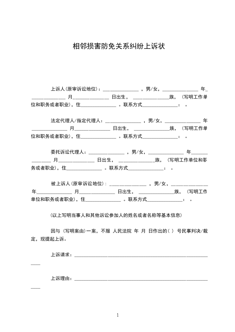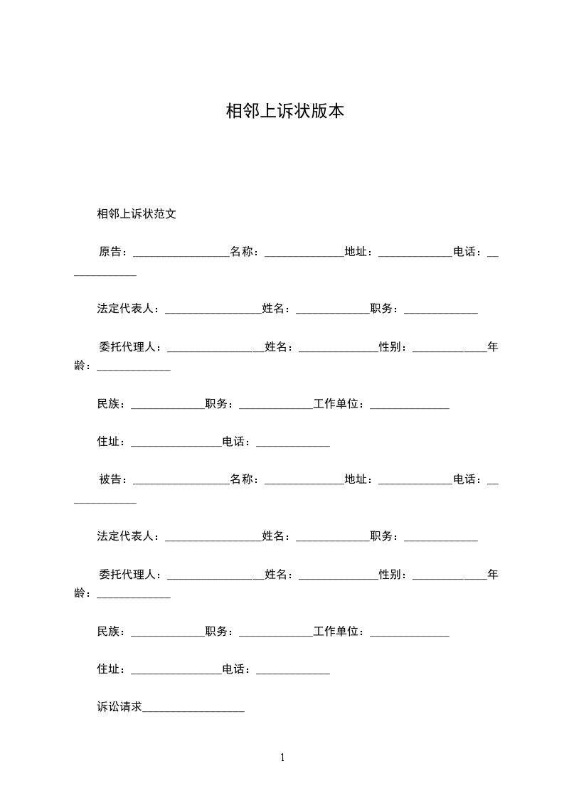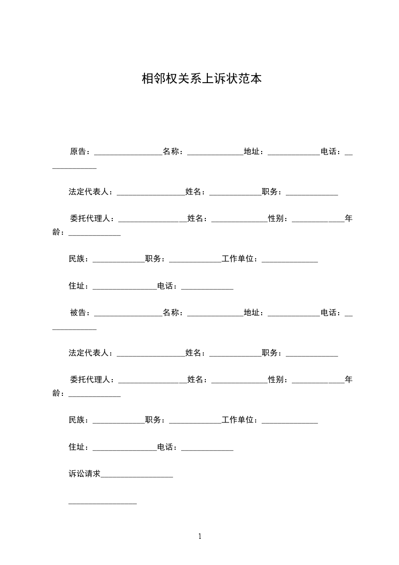 相邻权关系上诉状范本