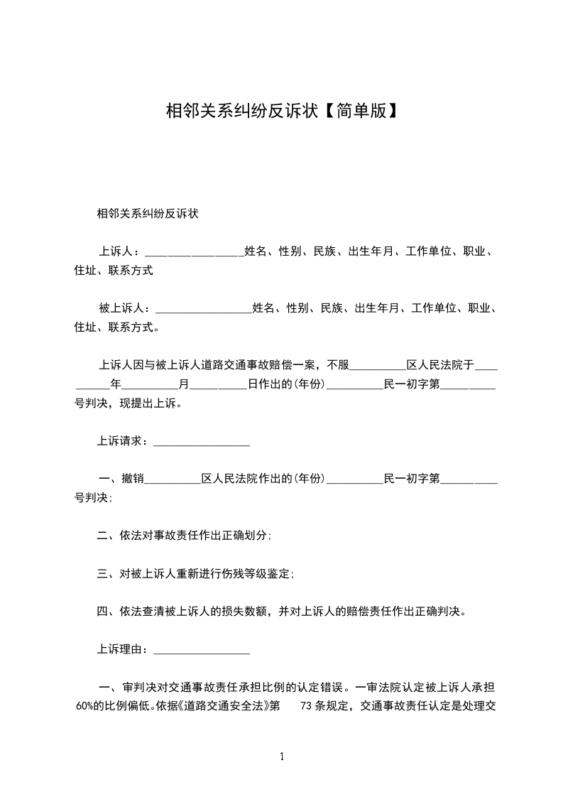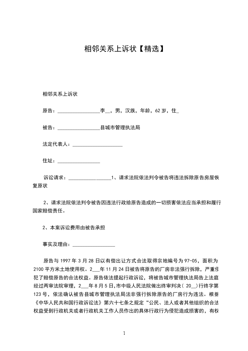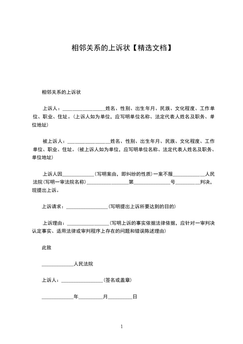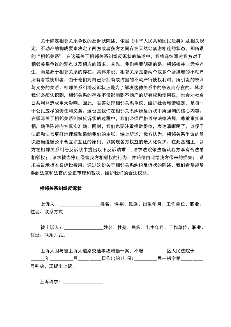 相邻权关系上诉状范本