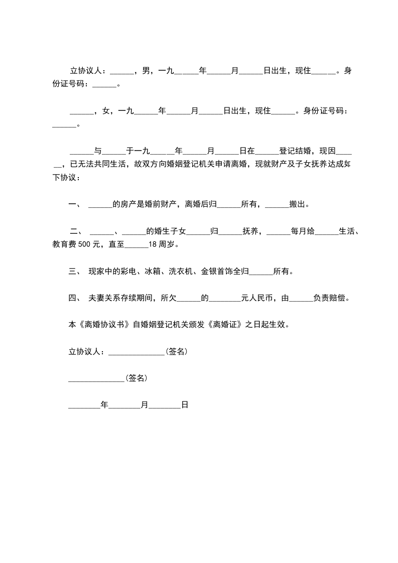 (本协议一式三份,当事人双方各执一份,交婚姻登记机关存档备案一份。