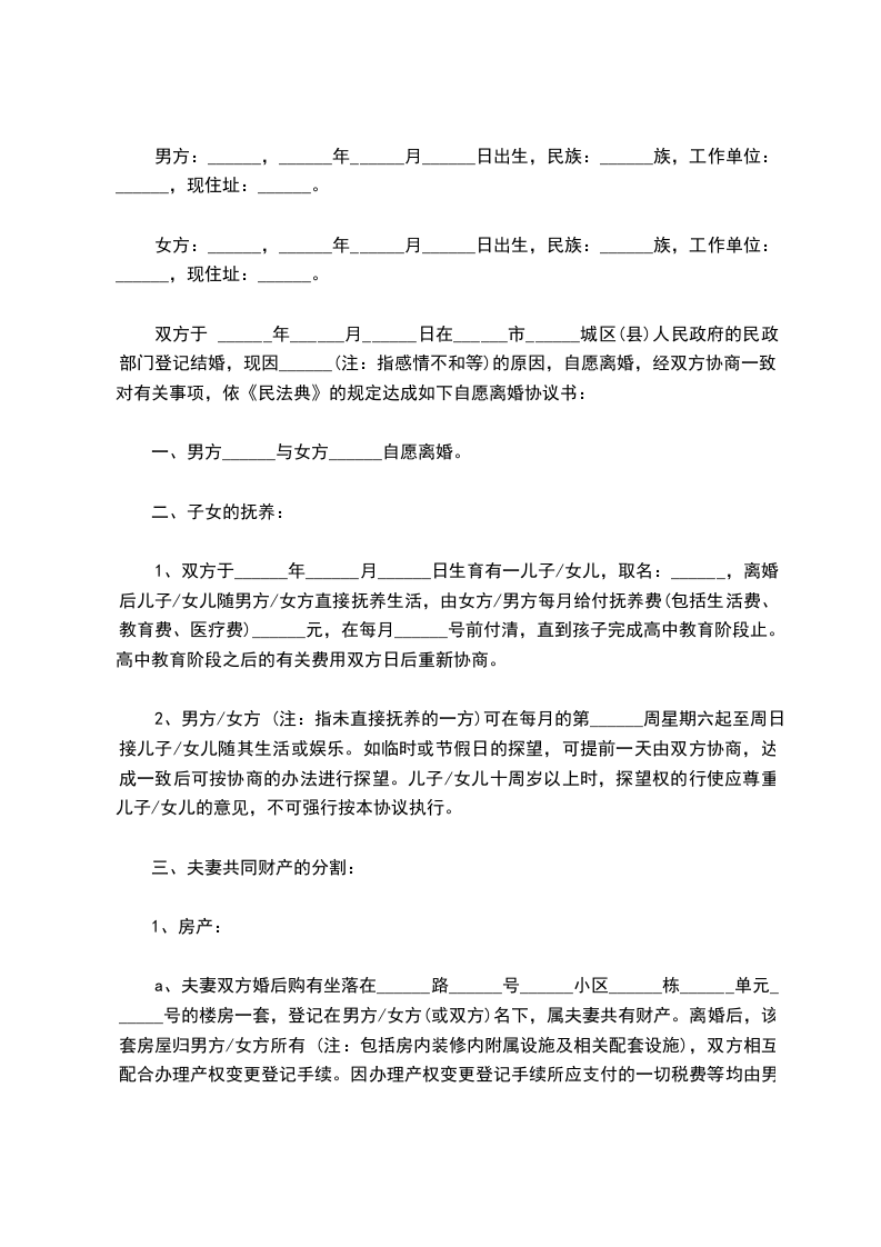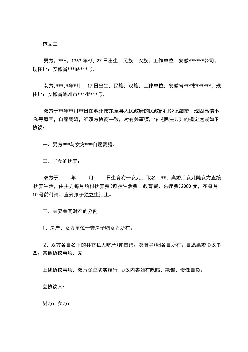 双方于**年**月**日在池州市东至县人民政府的民政部门登记结婚,现因感情不和等原因,自愿离婚,经双方协商一致,对有关事项,依《民法典》的规定达成如下协议: