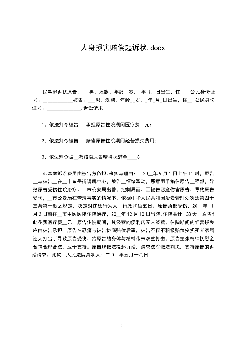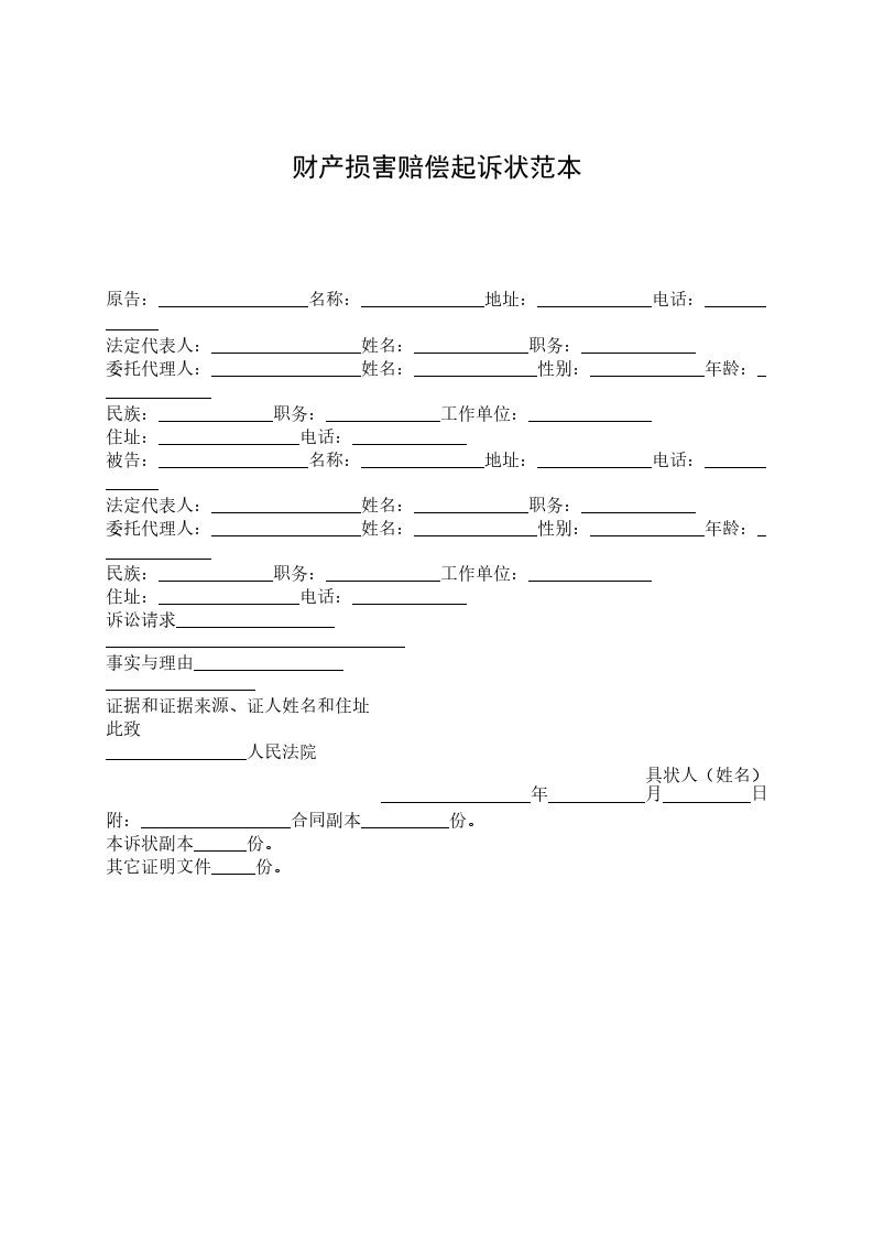 原告:_________________名称:______________地址:_____________电话:_____________ 法定代表人:_________________姓名:_____________职务:_____________ 委托代理人:_________________姓名:______________性别:_____________年龄:_____________ 民族:_____________职务:_____________工作单位:______________ 住址:________________电话:_____________ 被告:_________________名称:______________地址:_____________电话:_____________ 法定代表人:_________________姓名:_____________职务:_____________ 委托代理人:_________________姓名:______________性别:_____________年龄:_____________ 民族:_____________职务:_____________工作单位:______________ 住址:________________电话:_____________ 诉讼请求__________________ __________________________________ 事实与理由_________________ _________________ 证据和证据来源、证人姓名和住址 此致 ________________人民法院 具状人(姓名) _________________年___________月__________日 附:_________________合同副本__________份。 本诉状副本______份。 其它证明文件_____份。