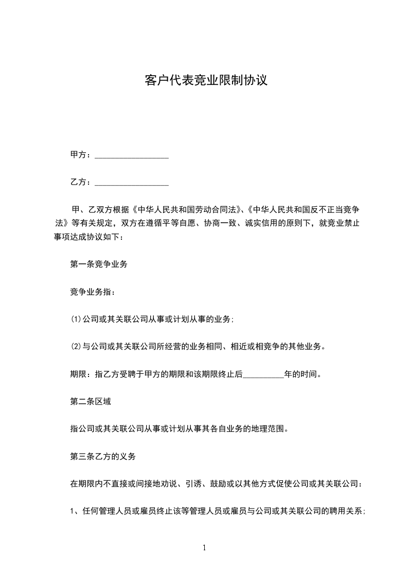 区域:指甲方或其关联企业从事或计划从事其各自业务的地理范围。