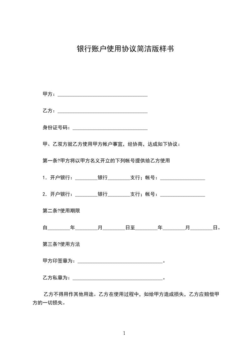 第一条?甲方将以甲方名义开立的下列帐号提供给乙方使用