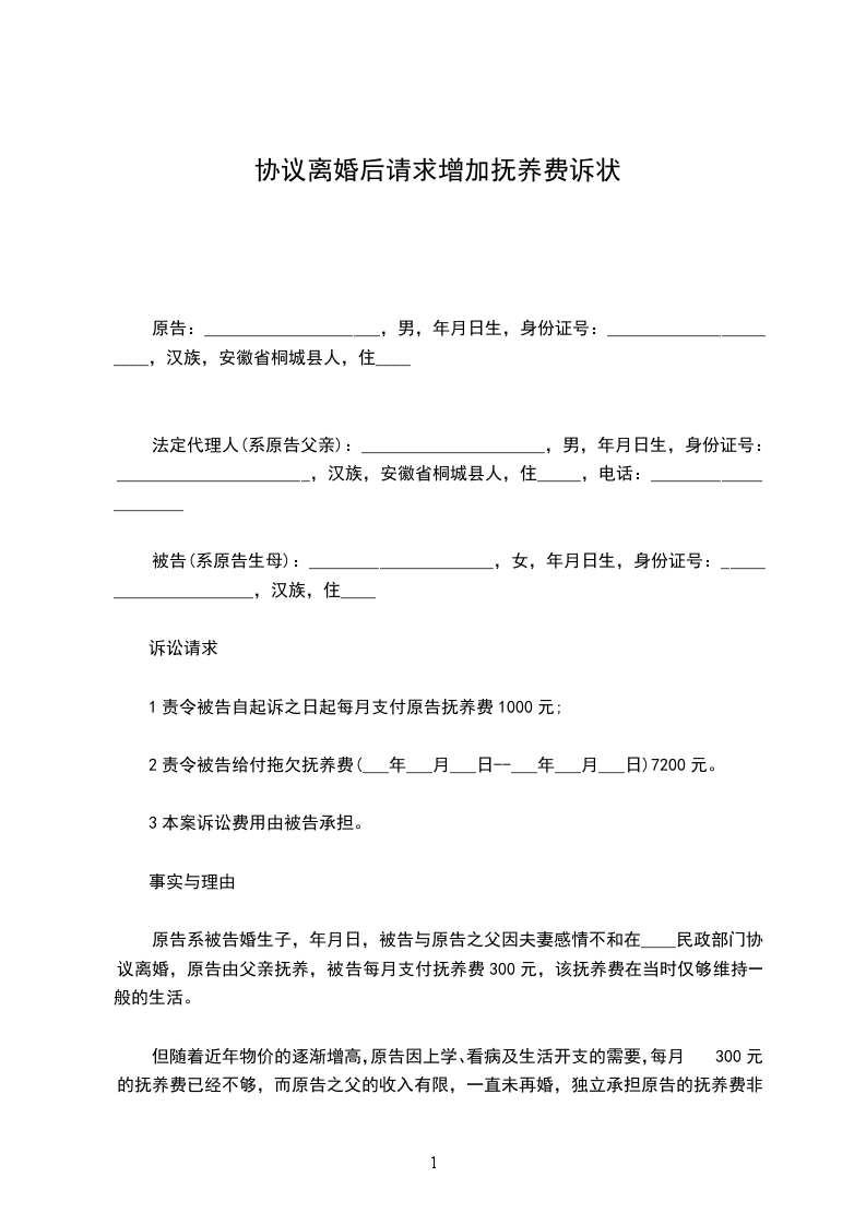 原告:____________________,男,______年____月____日生,身份证号:______________________,汉族,安徽省桐城县人,住____