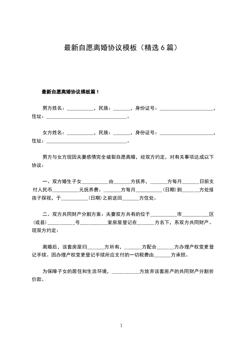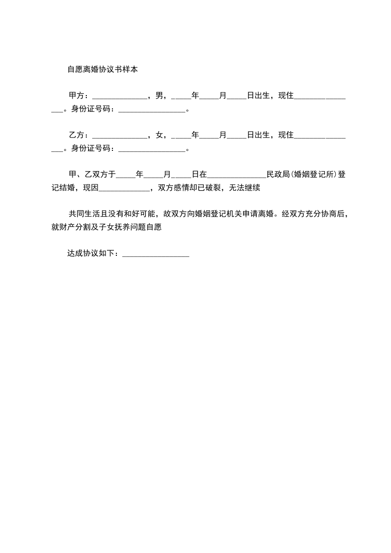 自愿离婚协议书样本