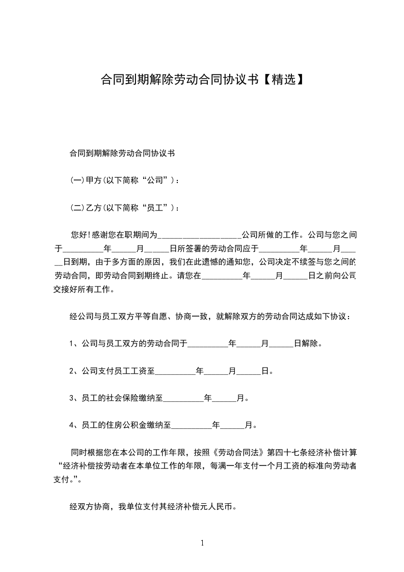 以上就是因租约合同到期解除劳动合同协议范本,请采纳