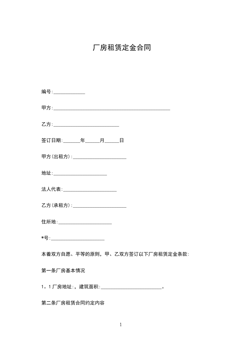 本着双方自愿、平等的原则,甲、乙双方签订以下厂房租赁定金条款: