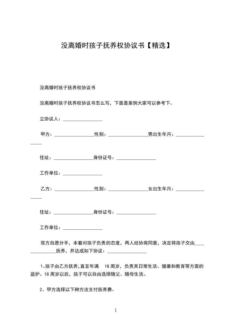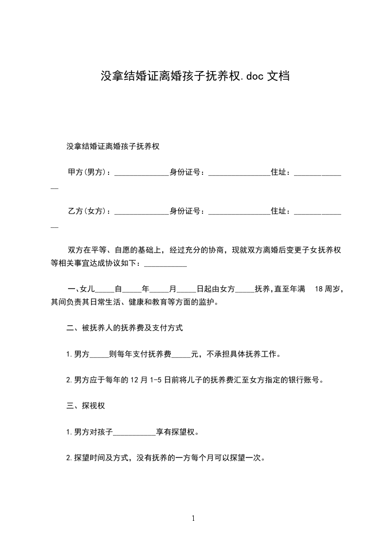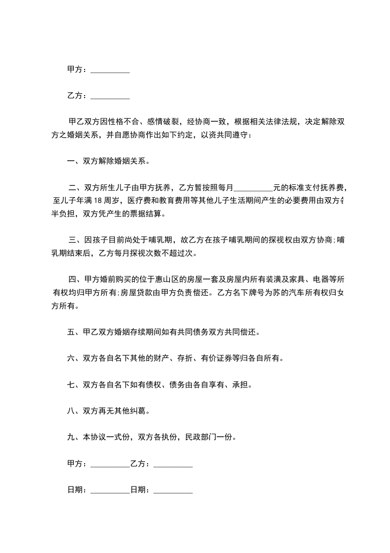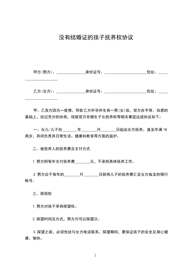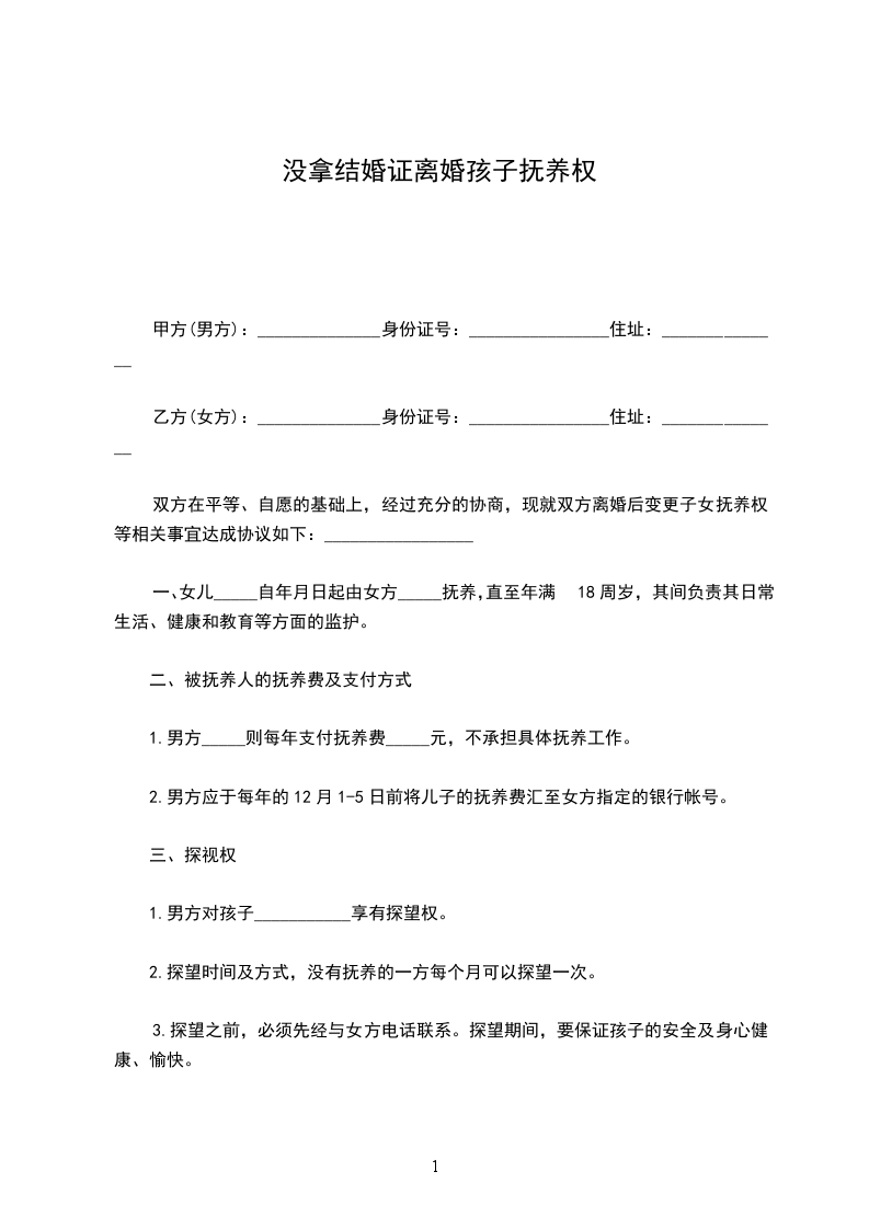 乙方(女方):______________身份证号:________________住址:______________