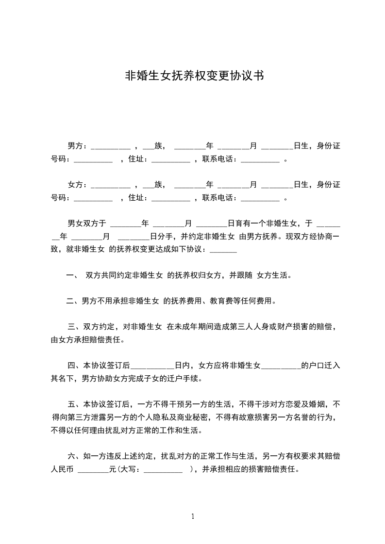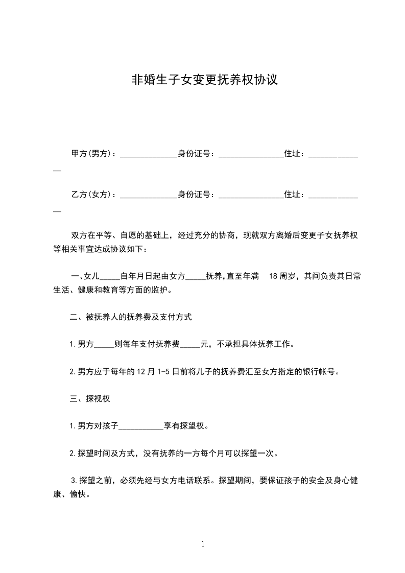 以上就是关于非婚子协议变更抚养权协议怎么写的回答。
