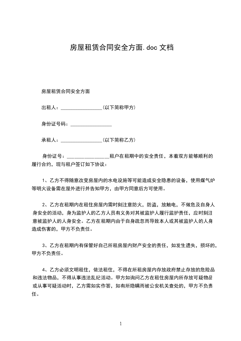 身份证号:_________________租户在租期中的安全责任,本着双方能够顺利的履行合约,现与租户签订如下协议: