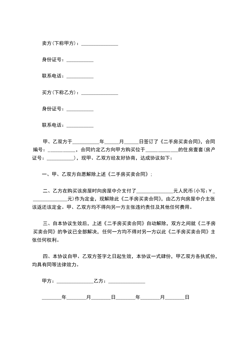 一、甲、乙双方自愿解除上述房屋的买卖合同。