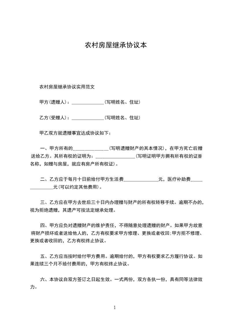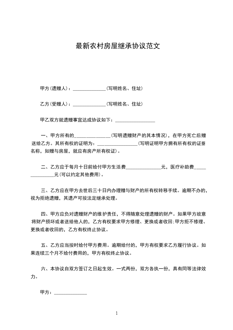 甲乙双方就遗赠事宜达成协议如下:_________________