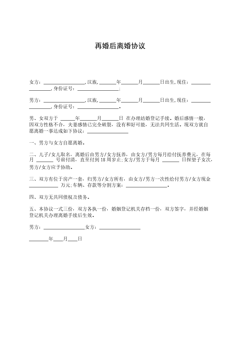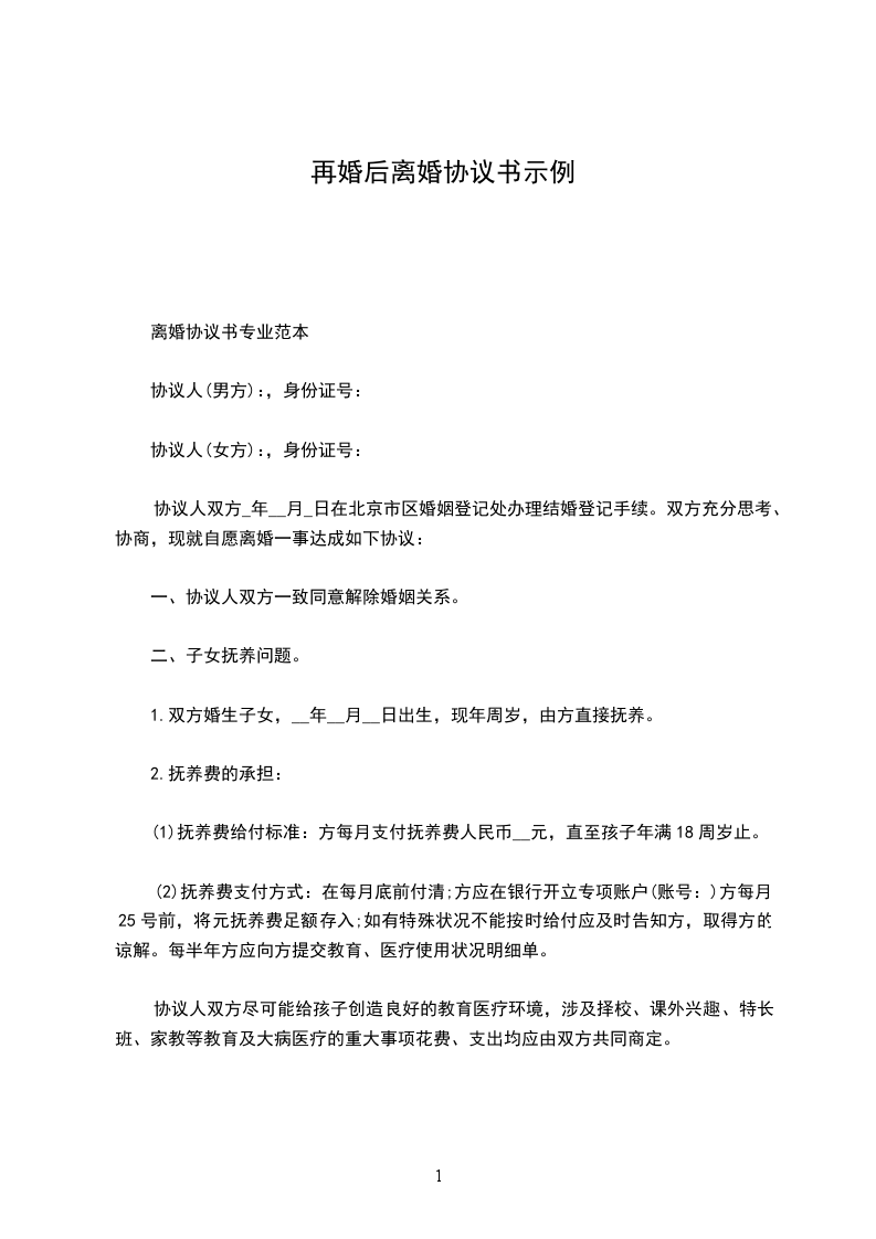 上述是再婚后离婚离婚协议书的具体范本