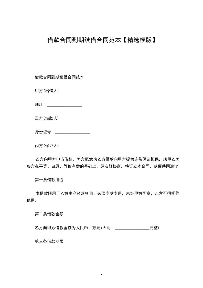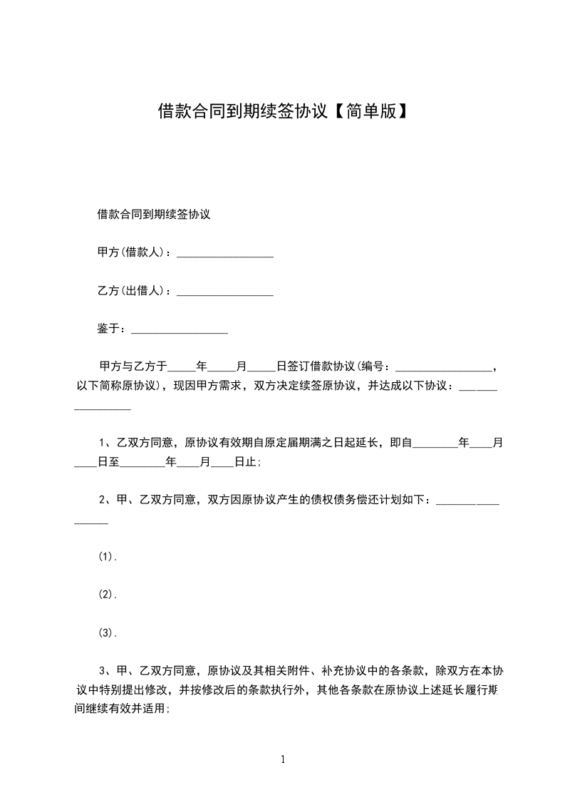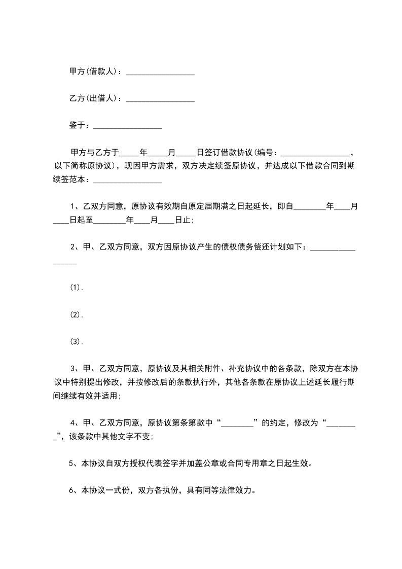 甲方与乙方于_____年_____月_____日签订借款协议(编号:_________________,以下简称原协议),现因甲方需求,双方决定续签原协议,并达成以下借款合同到期续签范本:_________________