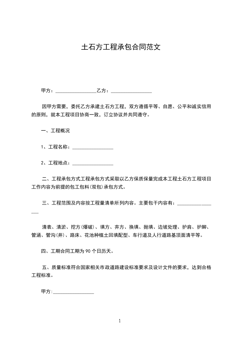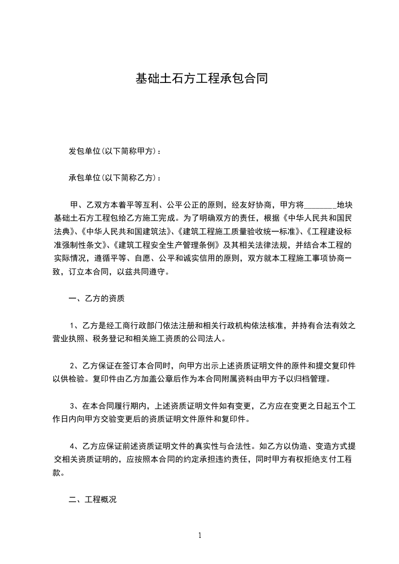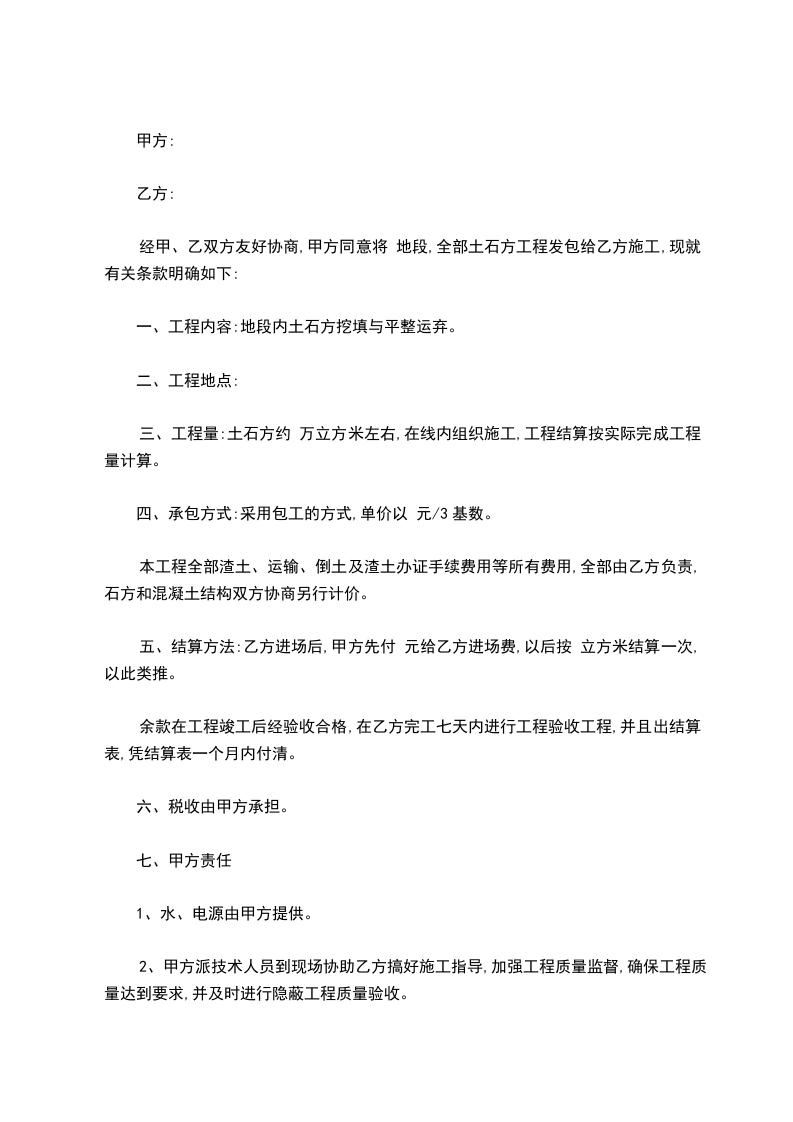 因甲方需要,委托乙方承建土石方工程,双方遵循平等、自愿、公平和诚实信用的原则,就本工程项目协商一致,订立协议并共同遵守。