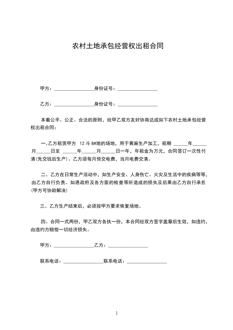 本着公平、公正、合法的原则,经甲乙双方友好协商达成如下农村土地承包经营权出租合同: