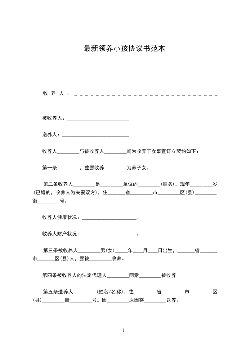 收养人_________与被收养人_________间为收养子女事宜订立契约如下: