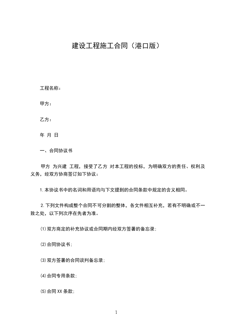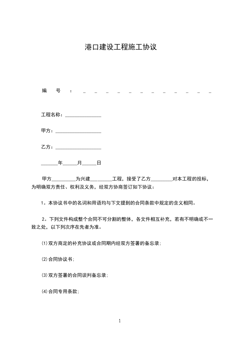 1.合同范围:列入本合同范围内的工程地点、内容、规模、建筑物的尺度,建筑物的结构形式,并明确合同范围内水工、堆场、水电、土建、机械、疏浚等不同专业的施工内容。