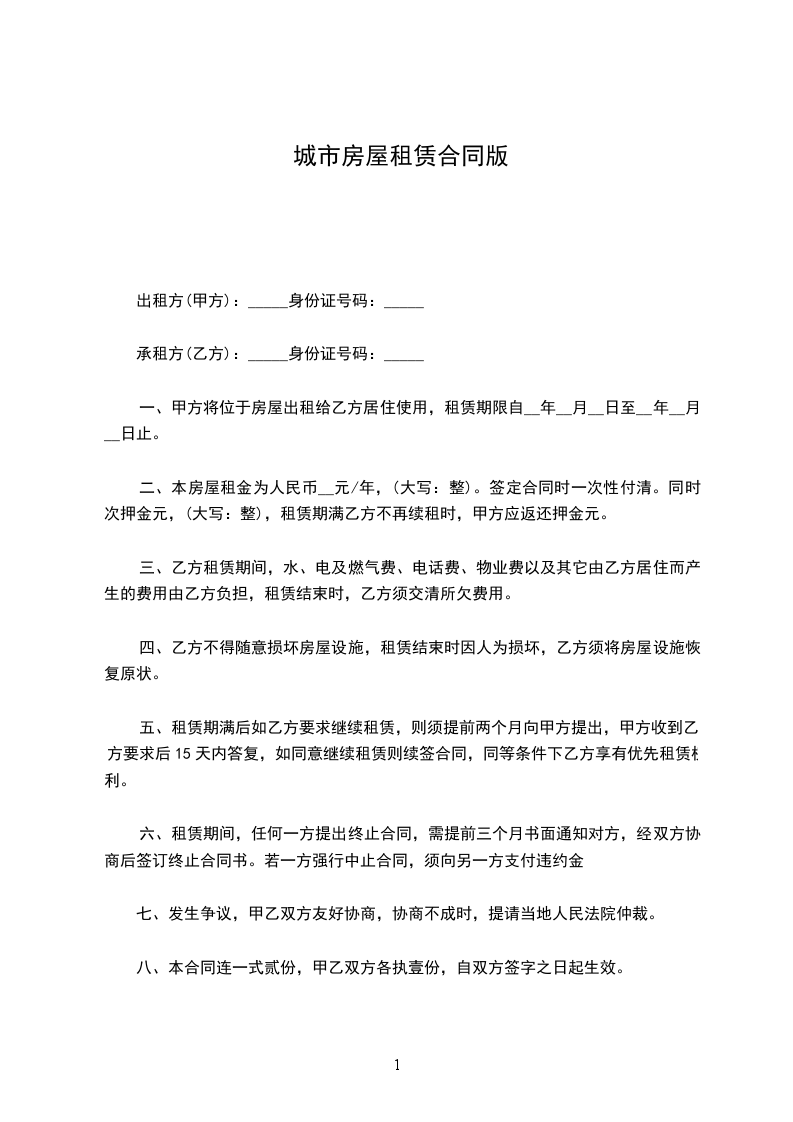 房屋租赁合同可参考如下:_________________