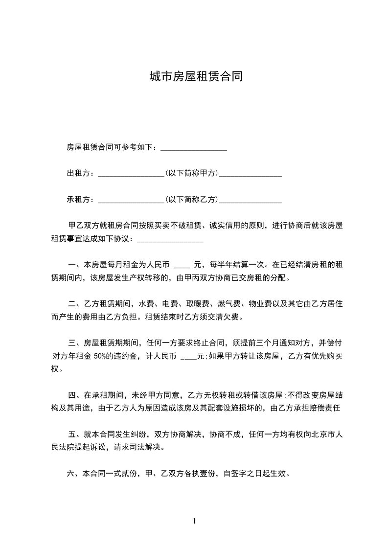 甲乙双方就租房合同按照买卖不破租赁、诚实信用的原则,进行协商后就该房屋租赁事宜达成如下协议:_________________
