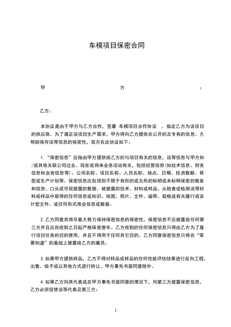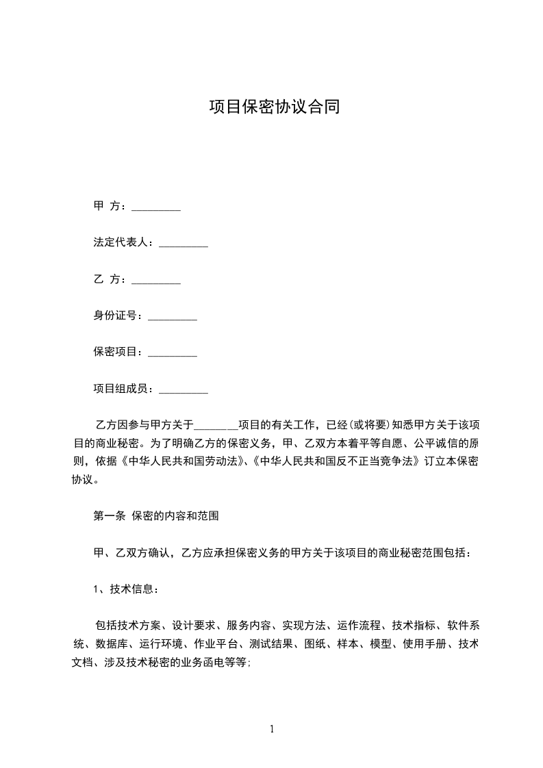 项目保密协议