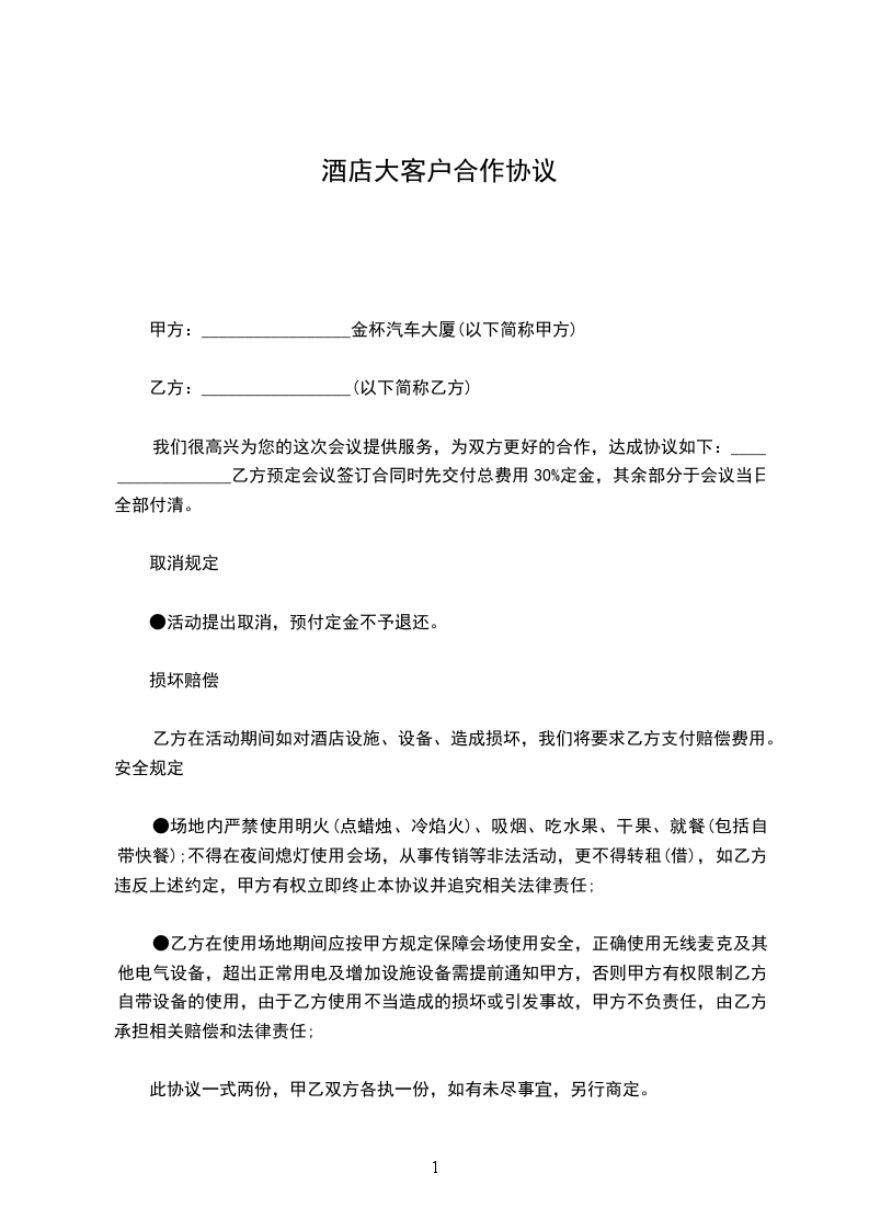 我们很高兴为您的这次会议提供服务,为双方更好的合作,达成协议如下:_________________乙方预定会议签订合同时先交付总费用30%定金,其余部分于会议当日全部付清。