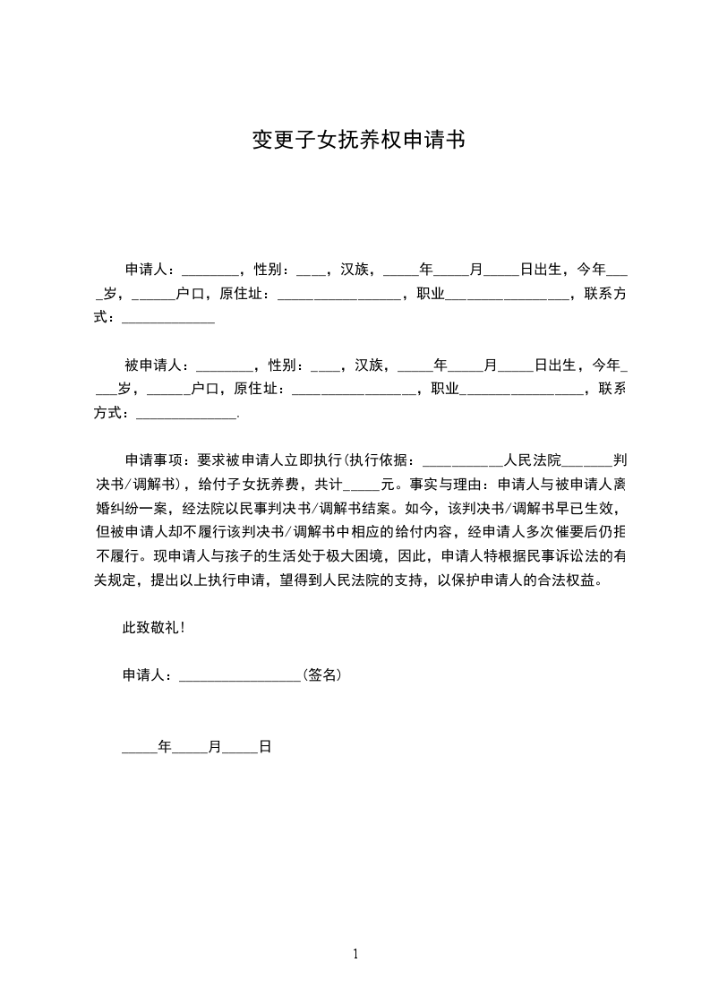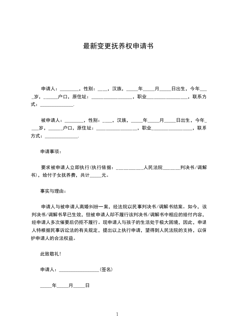 五、如遇其它未尽事宜或应时事宜,按照一切有利于孩子健康成长的原则,互谅互让,协商解决。