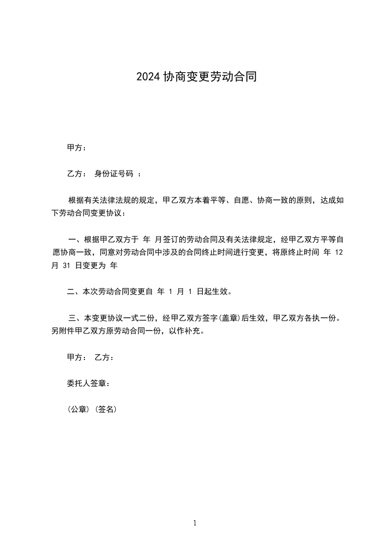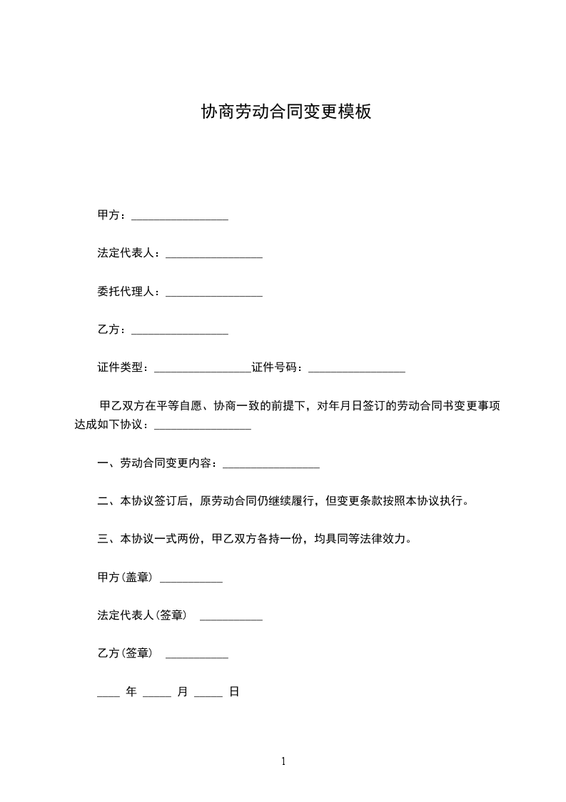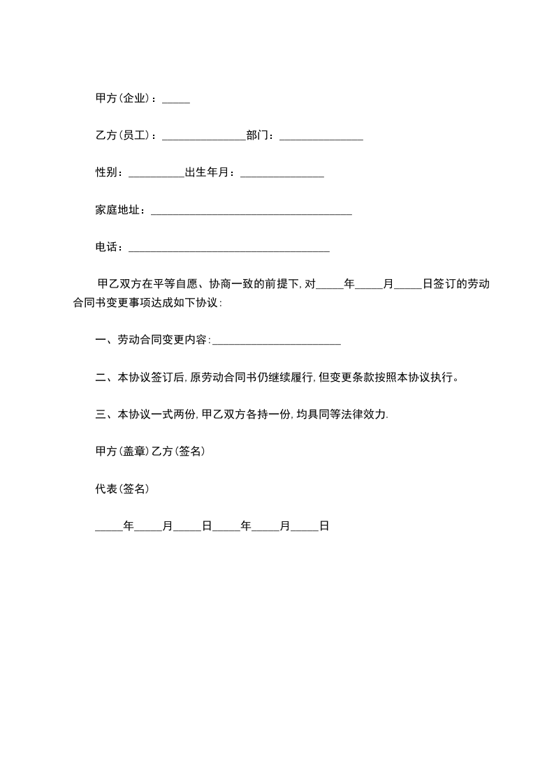 甲乙双方在平等自愿、协商一致的前提下,对_____年_____月_____日签订的劳动合同书变更事项达成如下协议:_________________