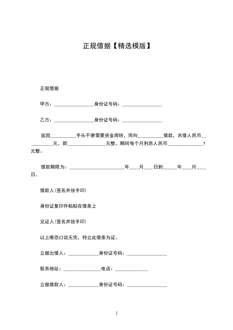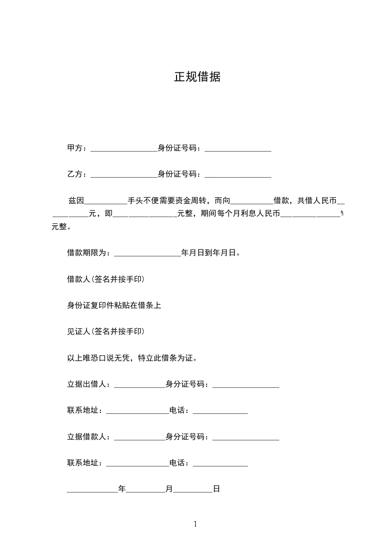 兹因___________手头不便需要资金周转,而向___________借款,共借人民币___________元,即________________元整,期间每个月利息人民币_______________%元整。