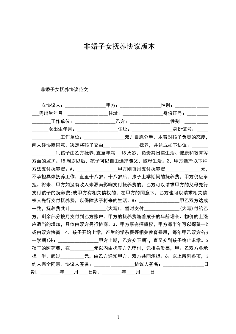 经甲乙双方经充分协商,就双方非婚生子女的抚养事宜自愿达成如下协议,双方愿意共同遵照执行此非婚生子女抚养协议:_________________