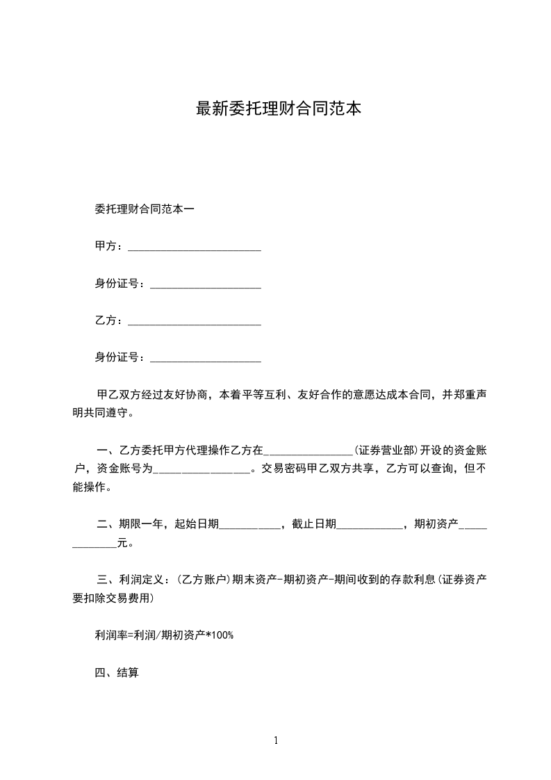 一、兹有甲方将自有资金委托乙方参于证券市场的操作而签订本合同。