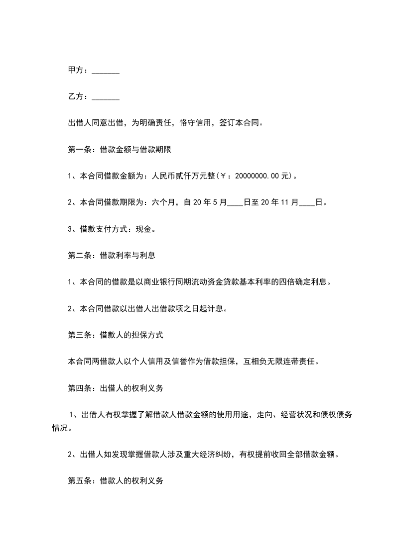 借款时间自__________年_____月_____日,至__________年_____月_____日止。借款实际发放和期限以借据为凭分次或一次发放和收回。借据应作为合同附件,同本合同、具有同等法律效力。