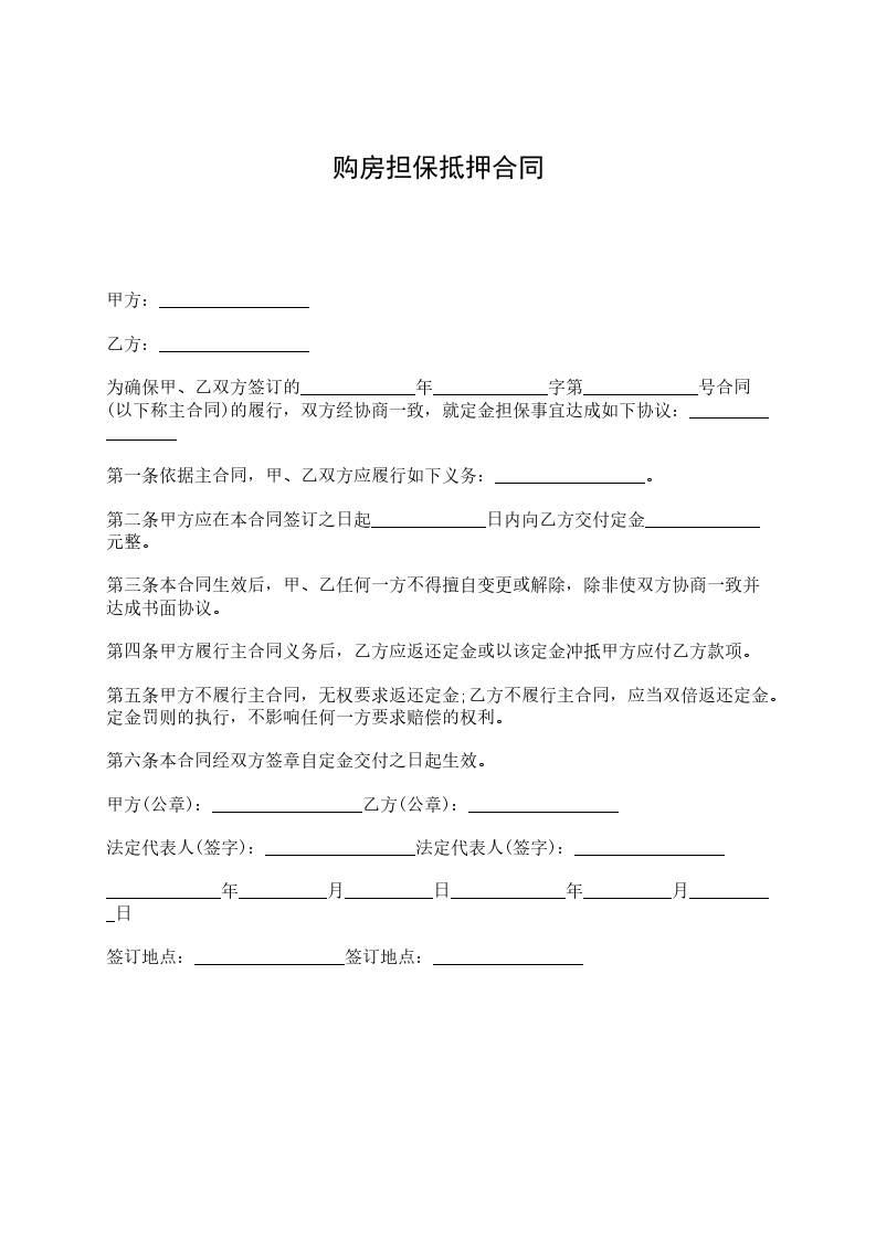甲方:_________________ 乙方:_________________ 为确保甲、乙双方签订的_____________年_____________字第_____________号合同(以下称主合同)的履行,双方经协商一致,就定金担保事宜达成如下协议:_________________ 第一条依据主合同,甲、乙双方应履行如下义务:_________________。 第二条甲方应在本合同签订之日起_____________日内向乙方交付定金_____________元整。 第三条本合同生效后,甲、乙任何一方不得擅自变更或解除,除非使双方协商一致并达成书面协议。 第四条甲方履行主合同义务后,乙方应返还定金或以该定金冲抵甲方应付乙方款项。 第五条甲方不履行主合同,无权要求返还定金;乙方不履行主合同,应当双倍返还定金。定金罚则的执行,不影响任何一方要求赔偿的权利。 第六条本合同经双方签章自定金交付之日起生效。 甲方(公章):_________________乙方(公章):_________________ 法定代表人(签字):_________________法定代表人(签字):_________________ _____________年__________月__________日_____________年__________月__________日 签订地点:_________________签订地点:_________________
