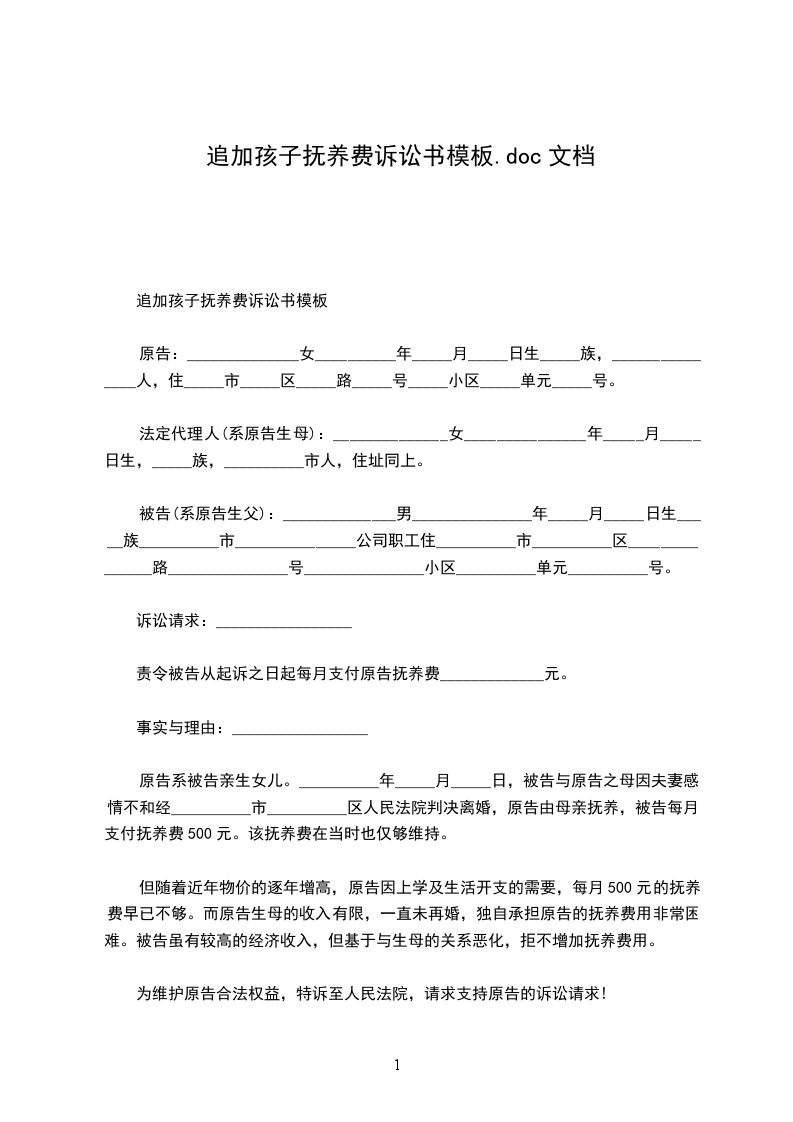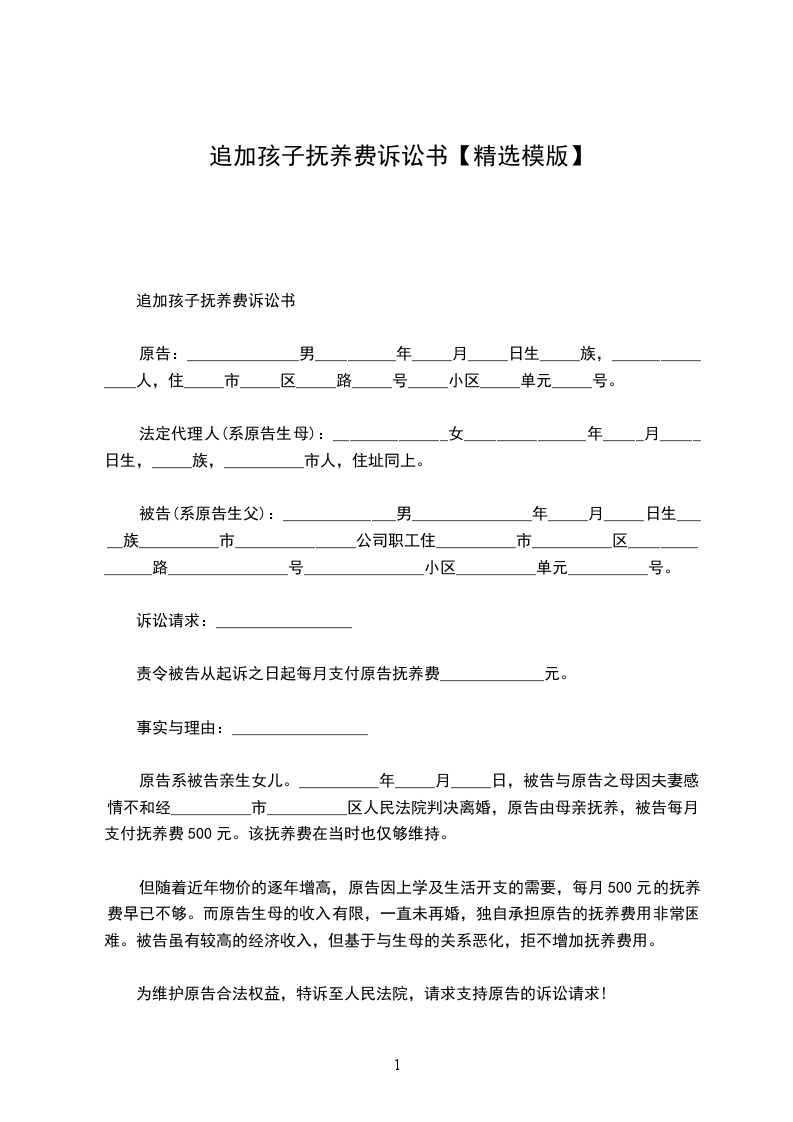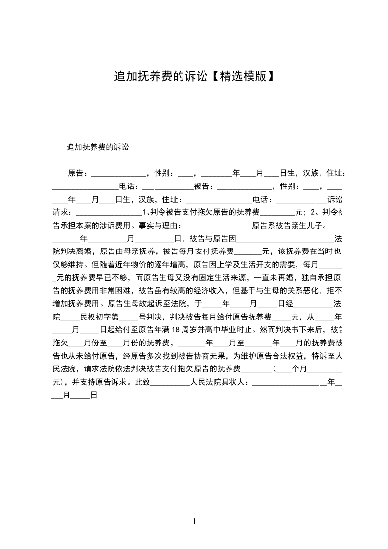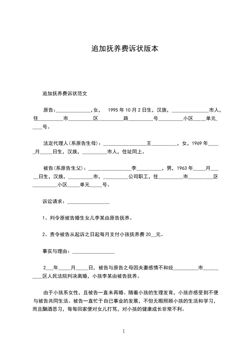 原告:______________,性别:____,________年____月____日生,汉族,住址:_________________电话:_____________ 被告:______________,性别:____,________年____月____日生,汉族,住址:_________________电话:_____________ 诉讼请求:_________________ 1、判令被告支付拖欠原告的抚养费_________元; 2、判令被告承担本案的涉诉费用。 事实与理由:_________________ 原告系被告亲生儿子。__________年__________月__________日,被告与原告因_________________________法院判决离婚,原告由母亲抚养,被告每月支付抚养费_______元,该抚养费在当时也仅够维持。但随着近年物价的逐年增高,原告因上学及生活开支的需要,每月_______元的抚养费早已不够,而原告生母又没有固定生活来源,一直未再婚,独自承担原告的抚养费用非常困难,被告虽有较高的经济收入,但基于与生母的关系恶化,拒不增加抚养费用。原告生母故起诉至法院,于_____年_____月_____日经__________法院()_____民权初字第_____号判决,判决被告每月给付原告抚养费_____元,从_____年_____月_____日起给付至原告年满18周岁并高中毕业时止。然而判决书下来后,被告拖欠____月份至____月份的抚养费,_______年____月至_______年____月的抚养费被告也从未给付原告,经原告多次找到被告协商无果,为维护原告合法权益,特诉至人民法院,请求法院依法判决被告支付拖欠原告的抚养费________(____个月_________元),并支持原告诉求。 此致 __________人民法院 具状人:______________ _____年_____月_____日